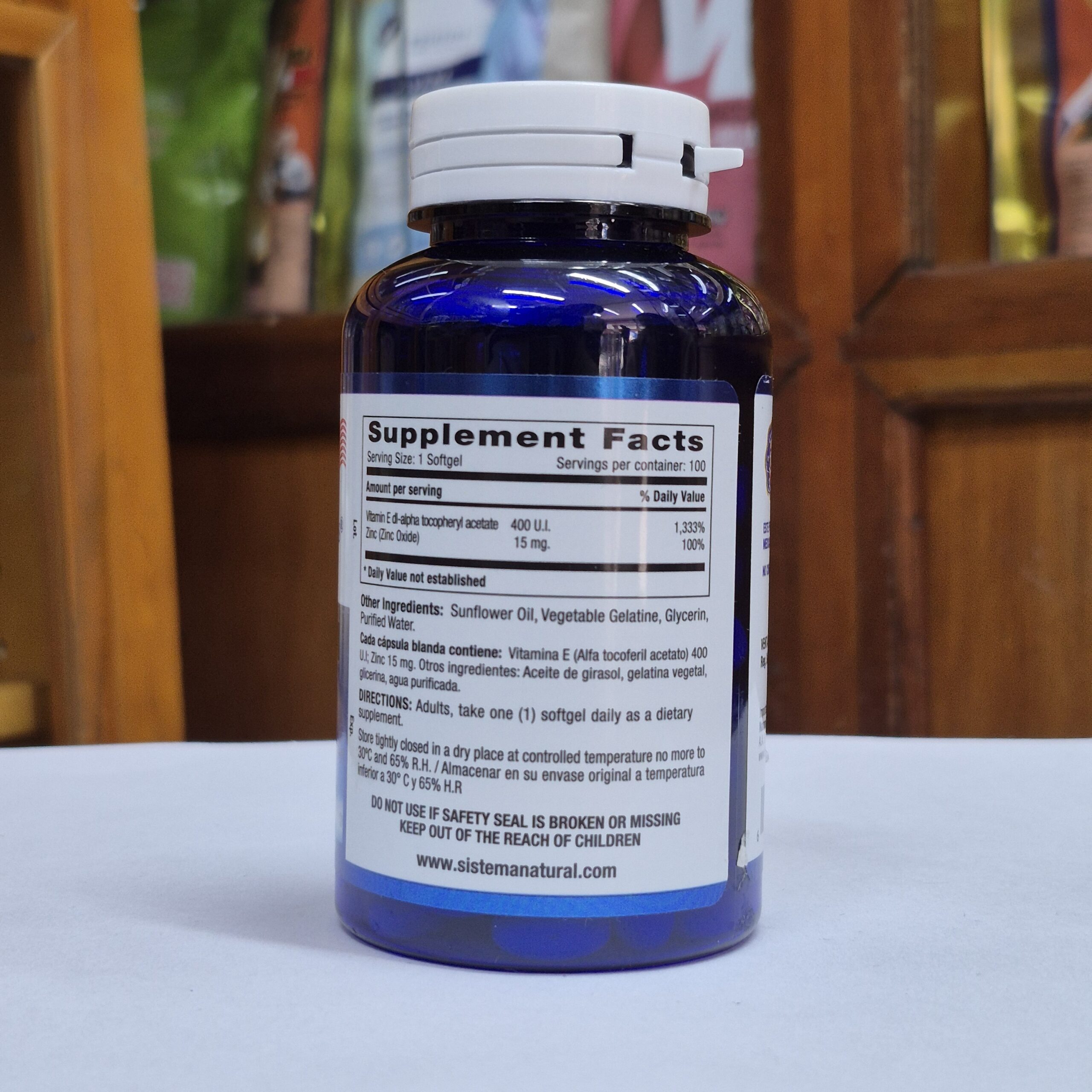 Softgels de Vitamina E (400 UI), antioxidante para la protección celular.